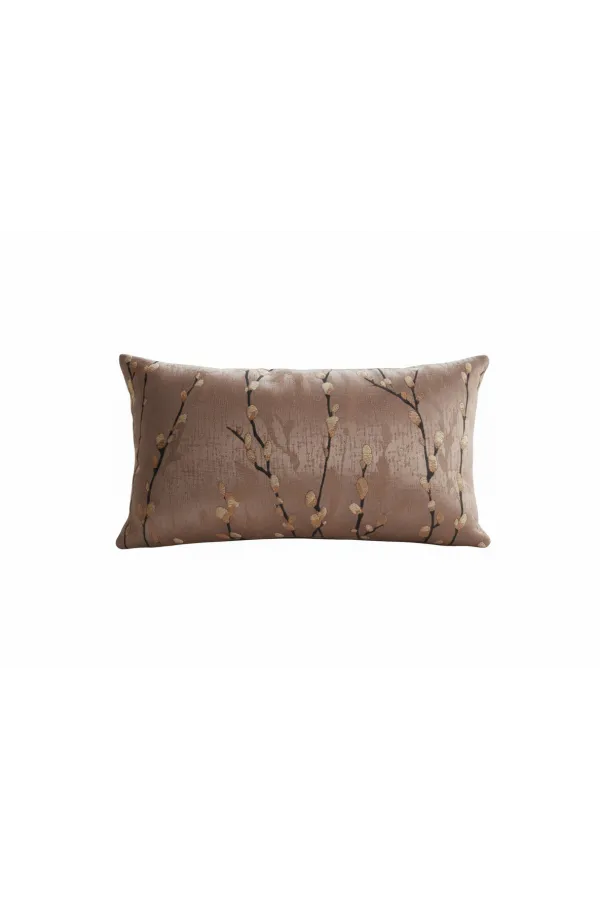 Armürlü Saten Dekoratif Kırlent – 30x50 Dikdörtgen Yastık Kılıfı (Dallar Desen)